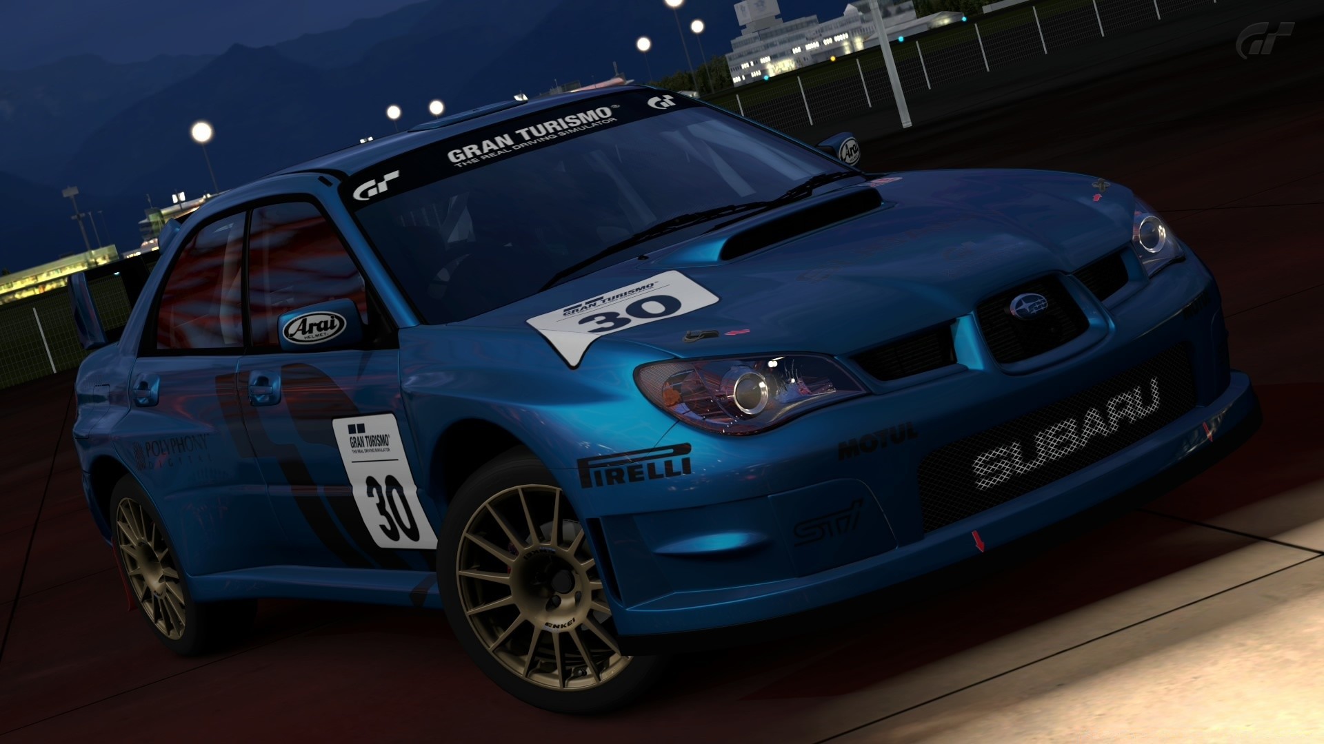 Macchina da corsa gialla sullo sfondo dell'anfiteatro nel gioco per computer gran turismo