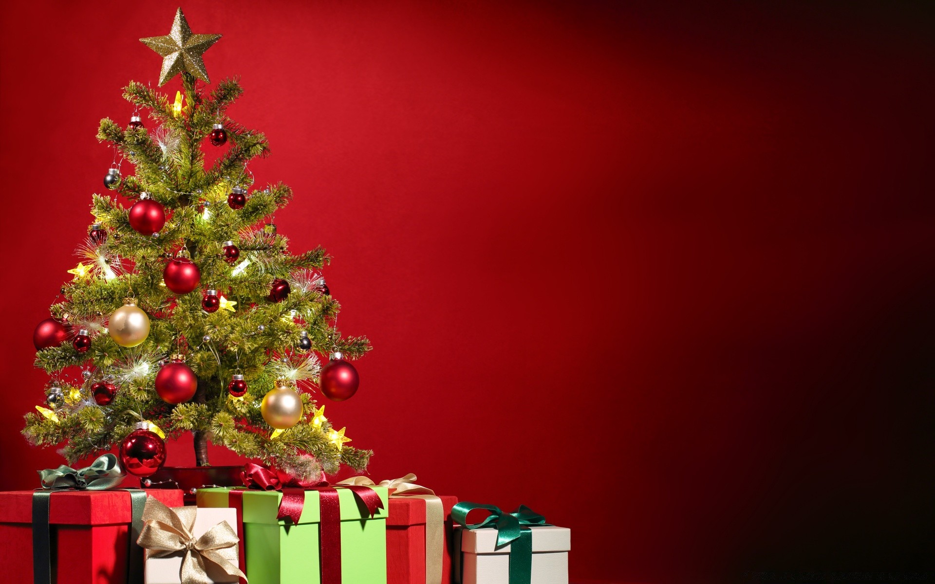 Cartolina di Natale palle rosse su sfondo dorato con lanterne