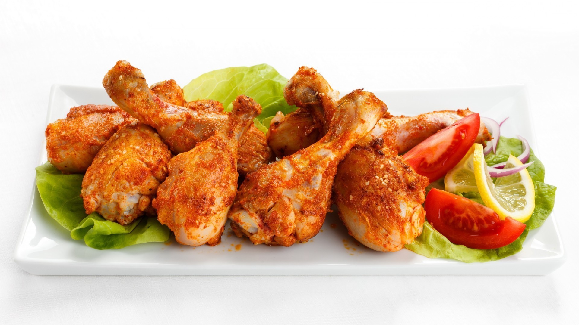 Ali appetitose su foglie di lattuga. Servire le ali di pollo