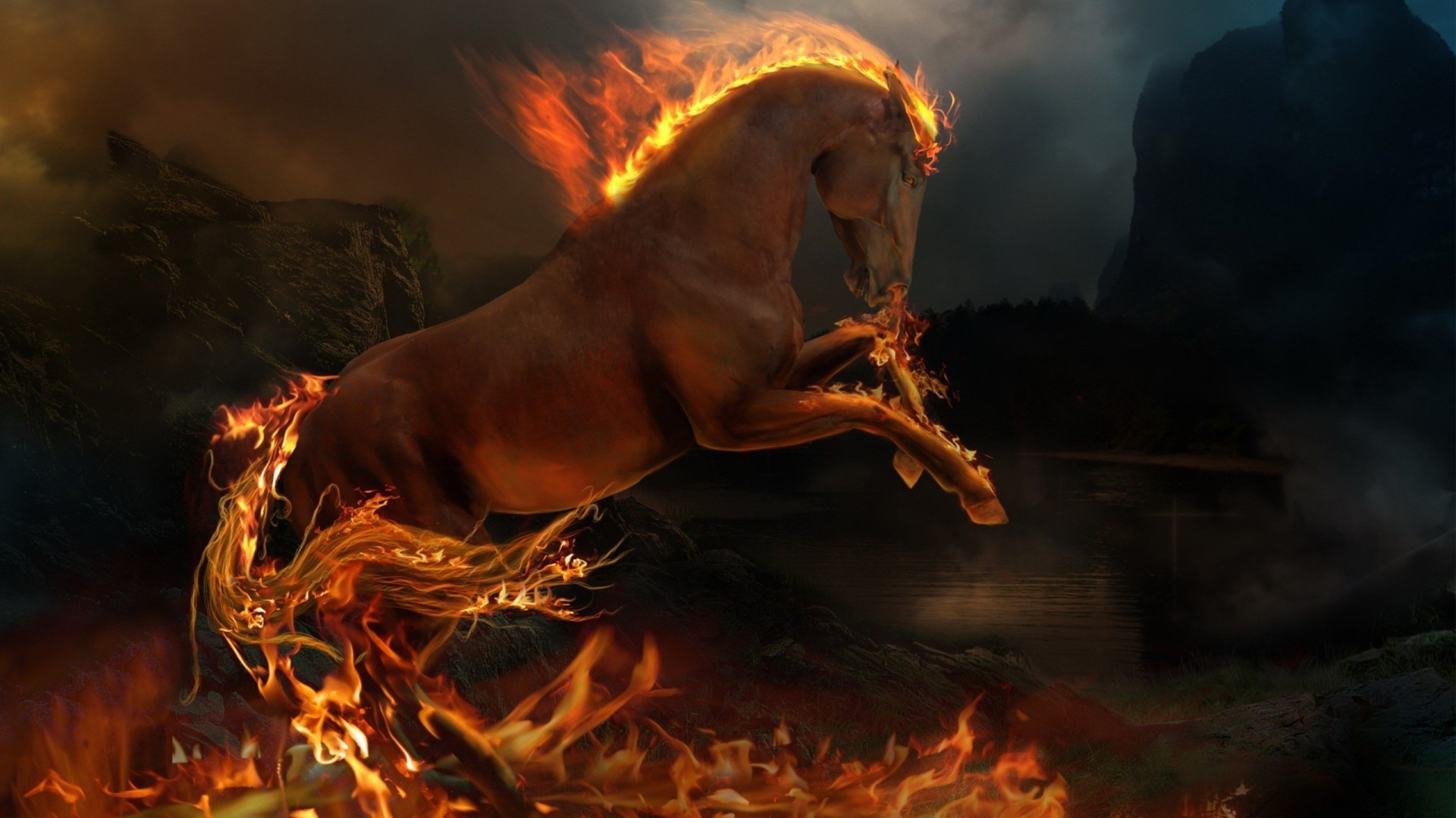 Simbolo dell'anno. L'Anno del cavallo di fuoco. Cavallo baio con criniera in fiamme