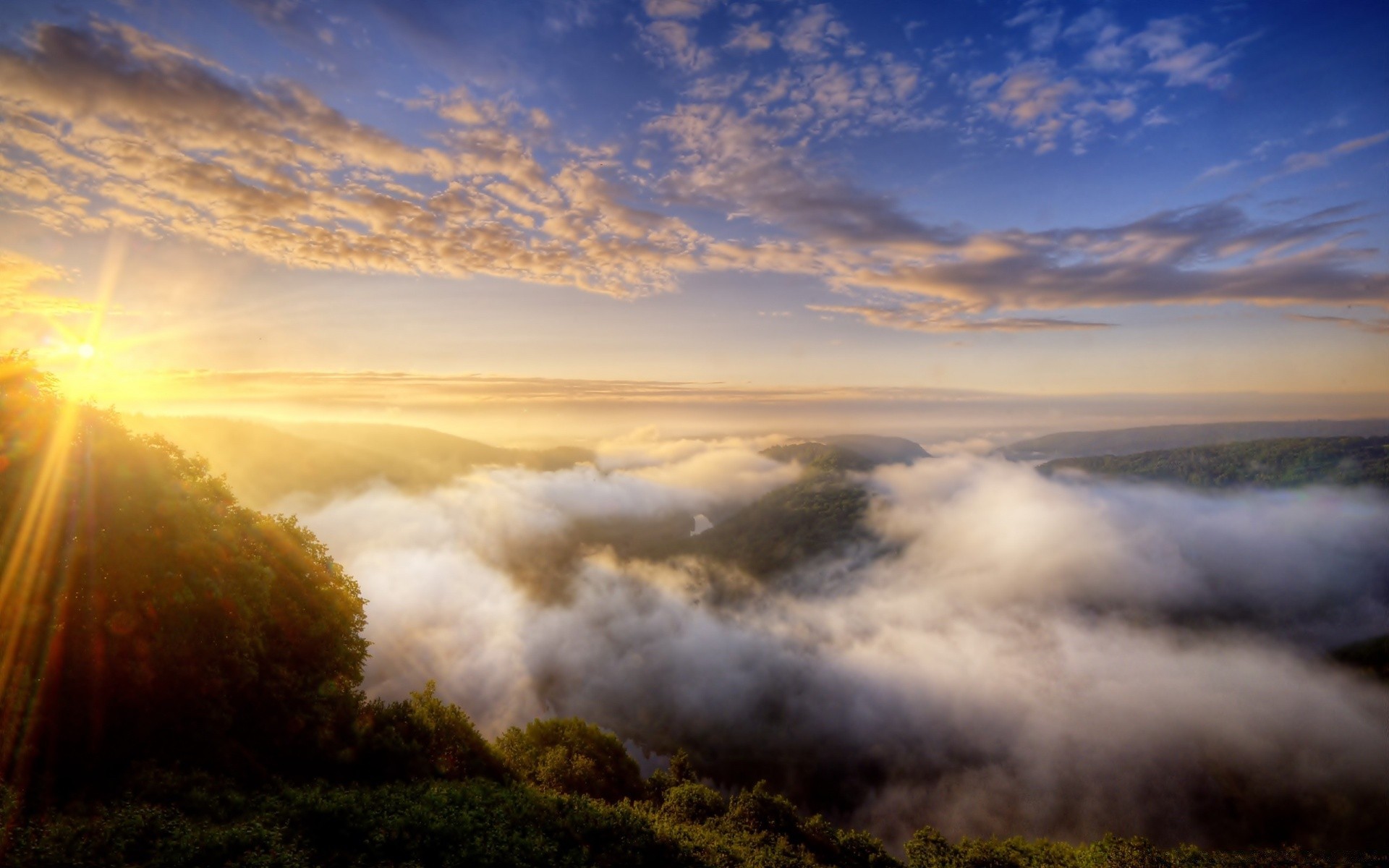 I raggi del sole si fanno strada attraverso la fitta chioma dell'albero