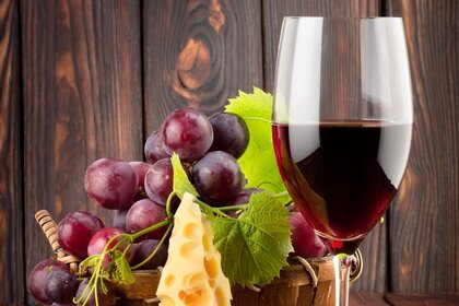 Natura morta con frutta e bicchiere di vino sullo sfondo della tavolaNatura morta con frutta e bicchiere di vino sullo sfondo della tavola