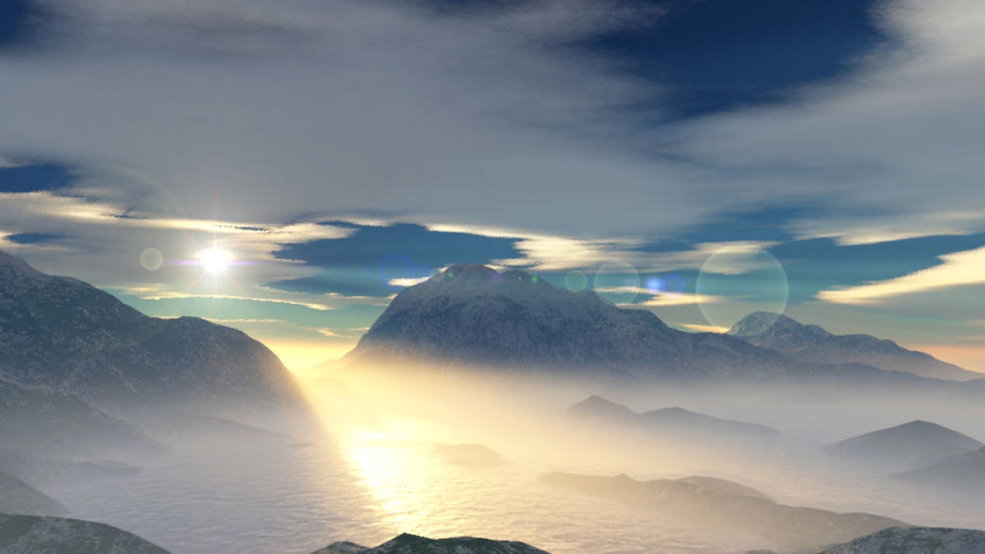 Alba sullo sfondo di un lago, montagne e boschi. gratificazione delle montagne nel lagoAlba sullo sfondo di un lago, montagne e boschi. Gratificazione delle montagne nel lago