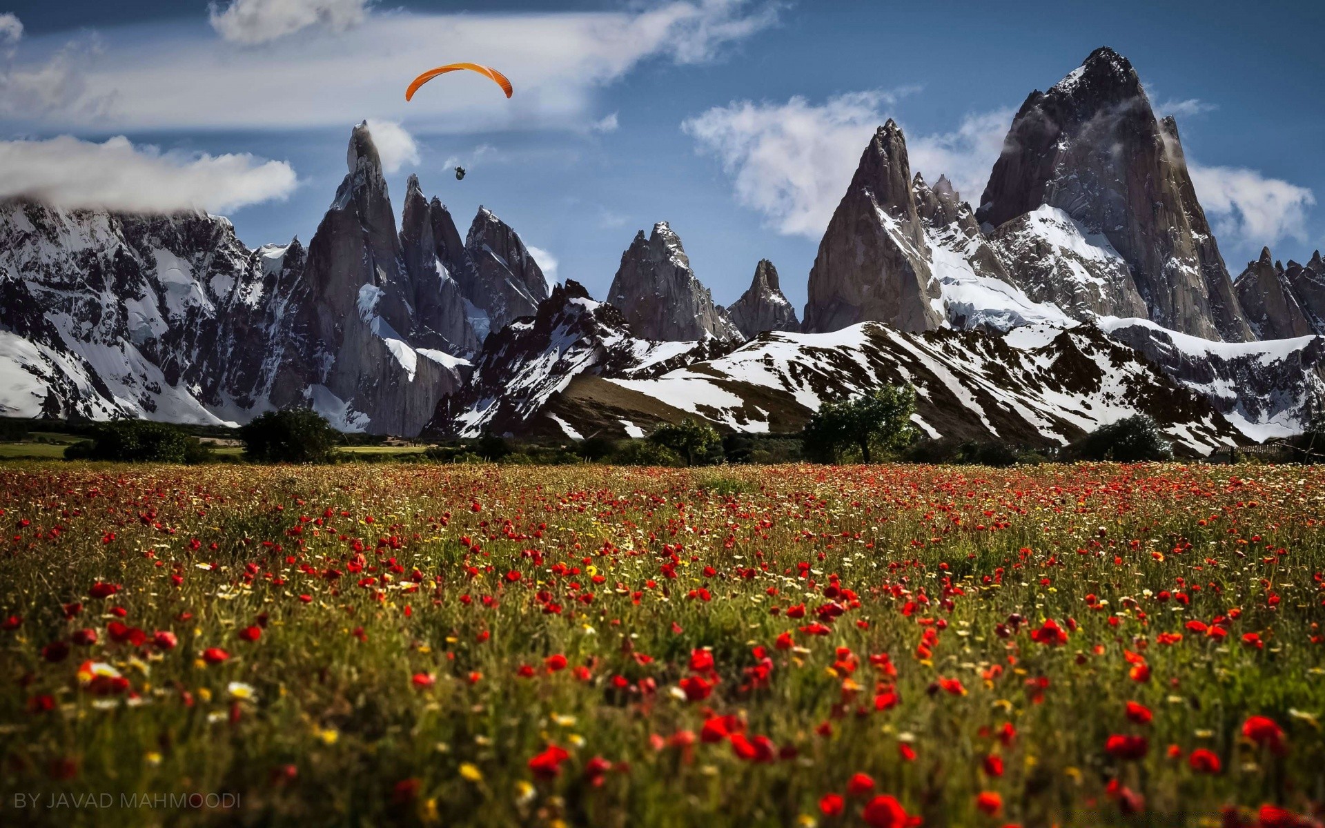 Mondo naturale. campo con fiori sullo sfondo delle montagneMondo naturale. Campo con fiori sullo sfondo delle montagne