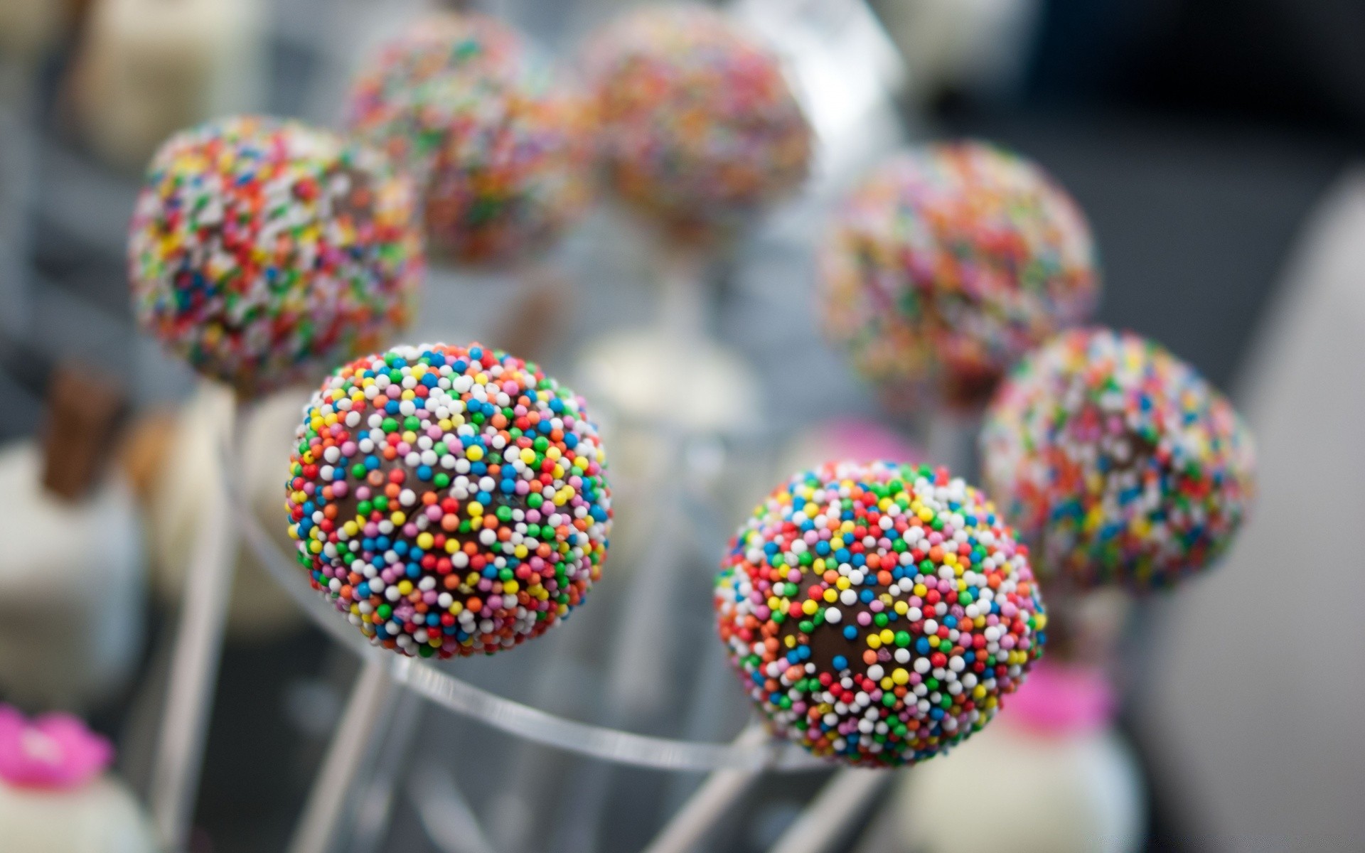 Dolce dessert rotondo su bastoncini per la decorazione