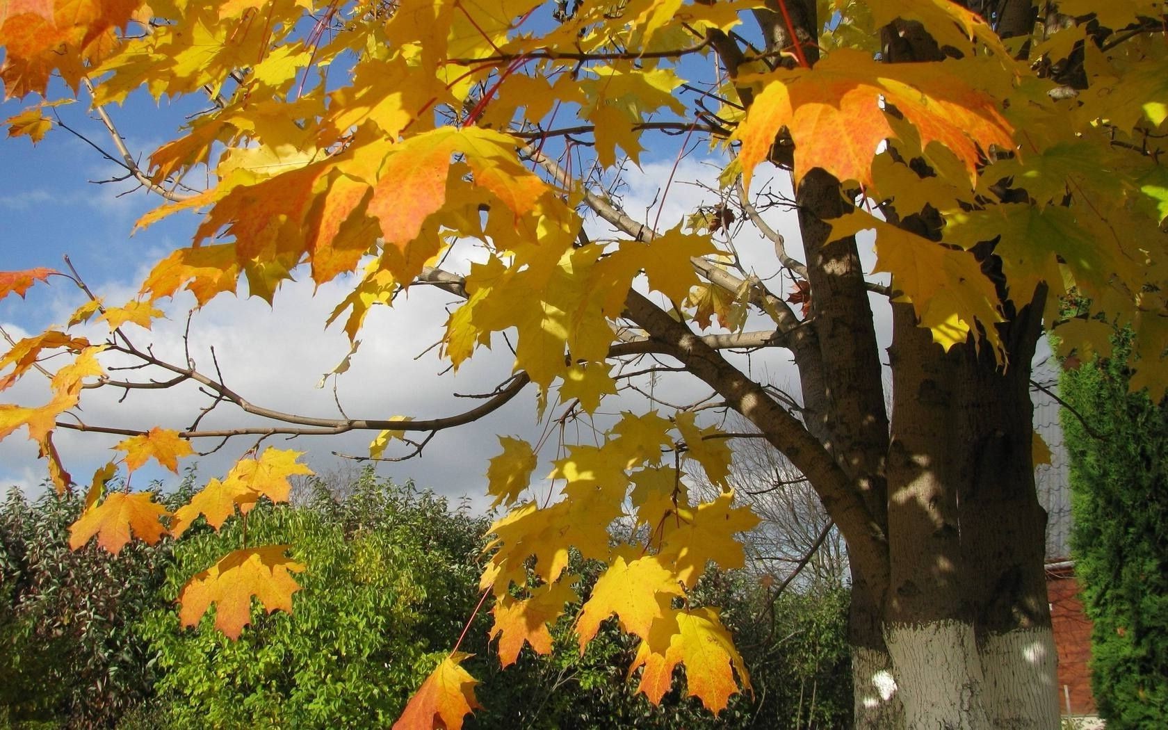 Respiro di autunno riflesso sulle foglie degli alberi