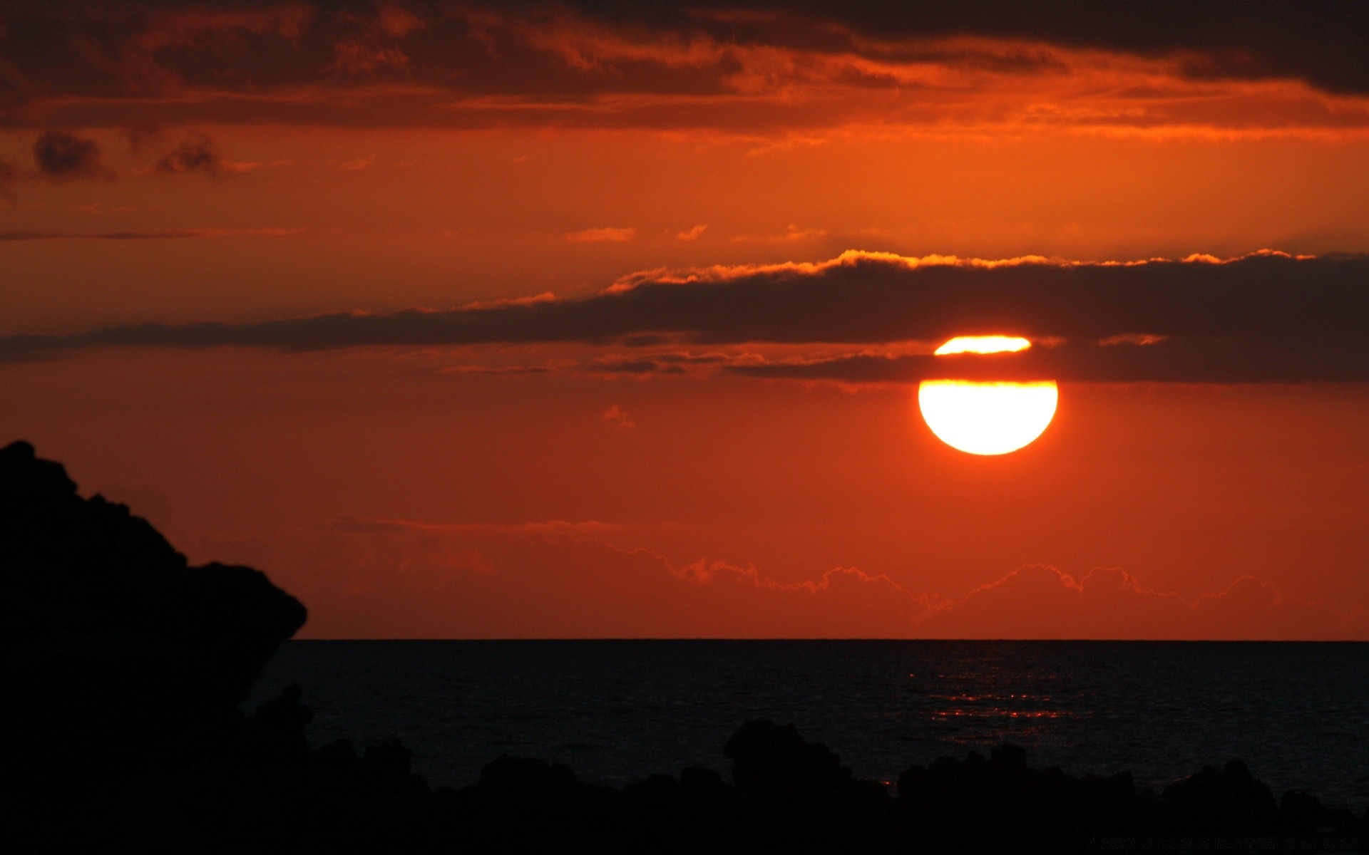 Tramonto infuocato dietro le nuvole pelose