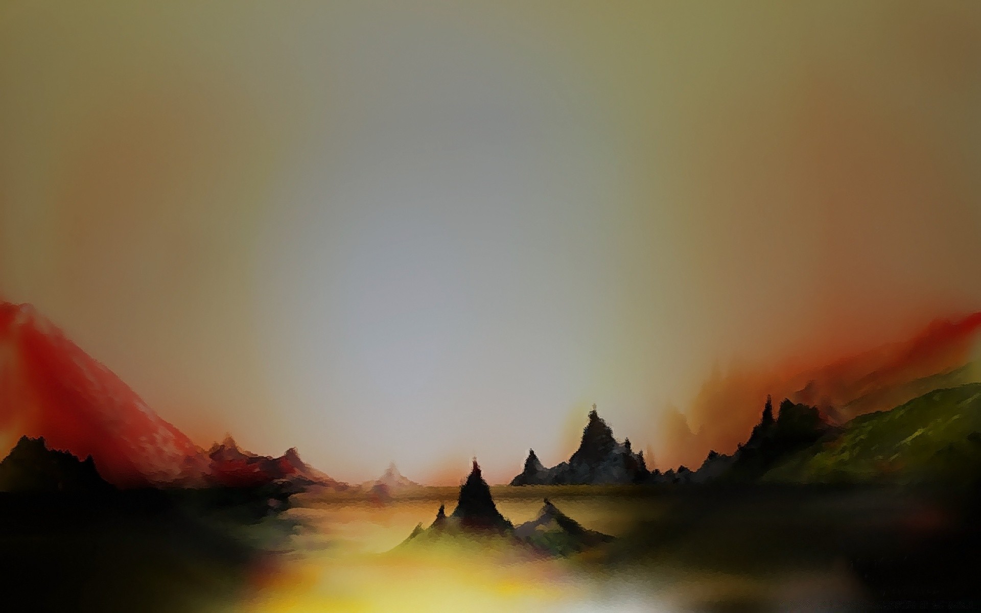 Disegno sfocato delle montagne al tramonto