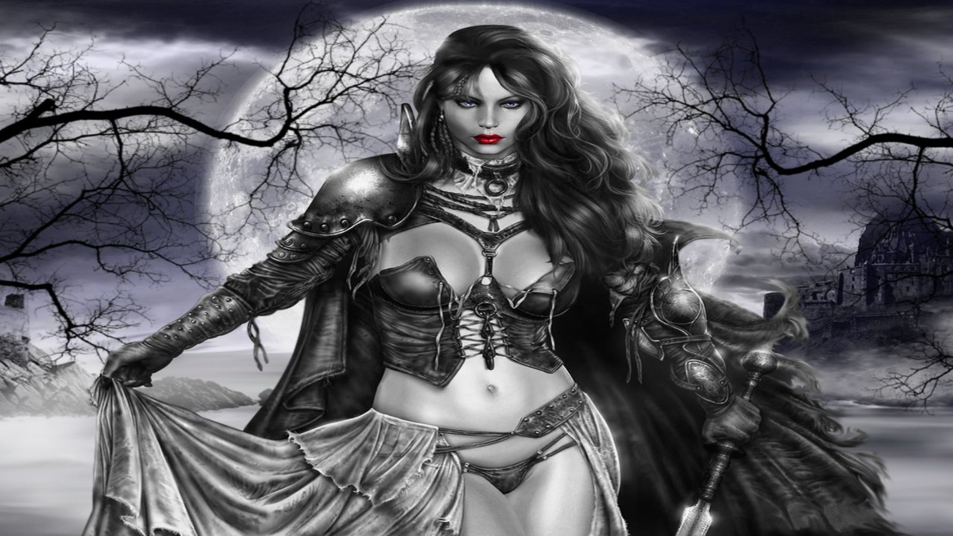 Nuove tecnologie. Donna con le armi in costume fantasia