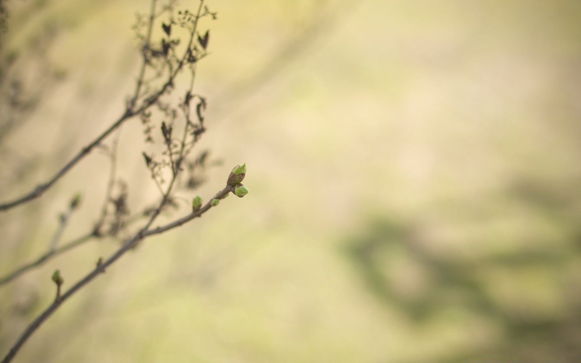 Macro-capacità. Gemme su un ramo. Sfondo sfocato verde