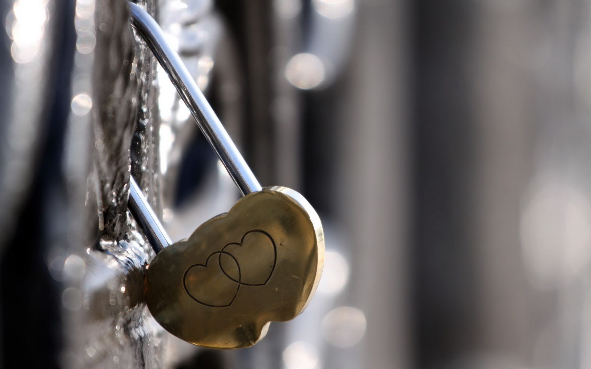 Un lucchetto d'amore sotto forma di due cuori incollati