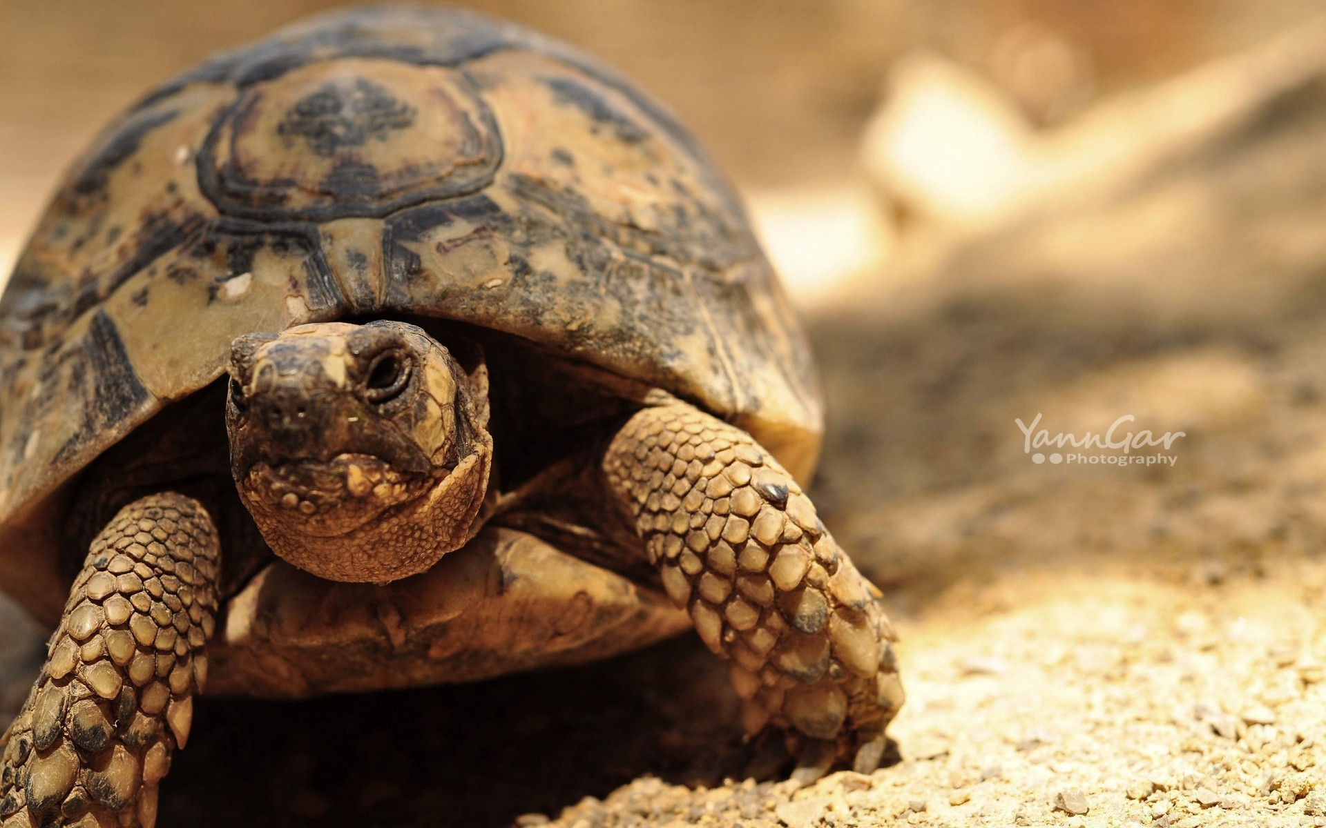 Tartaruga marrone che striscia nella sabbia