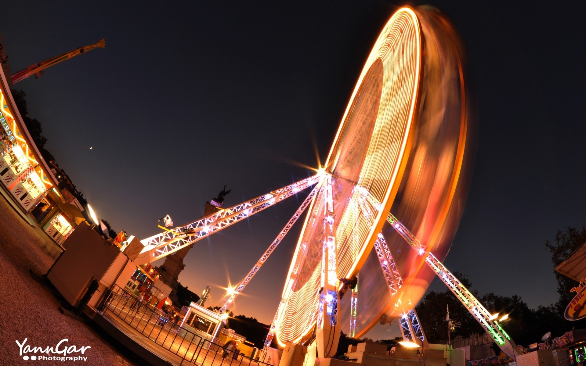 Ruota panoramica con retroilluminazione sullo sfondo del cielo notturno