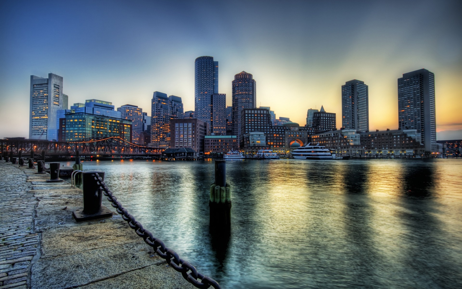 Bellissimo paesaggio di grattacieli sopra il fiume