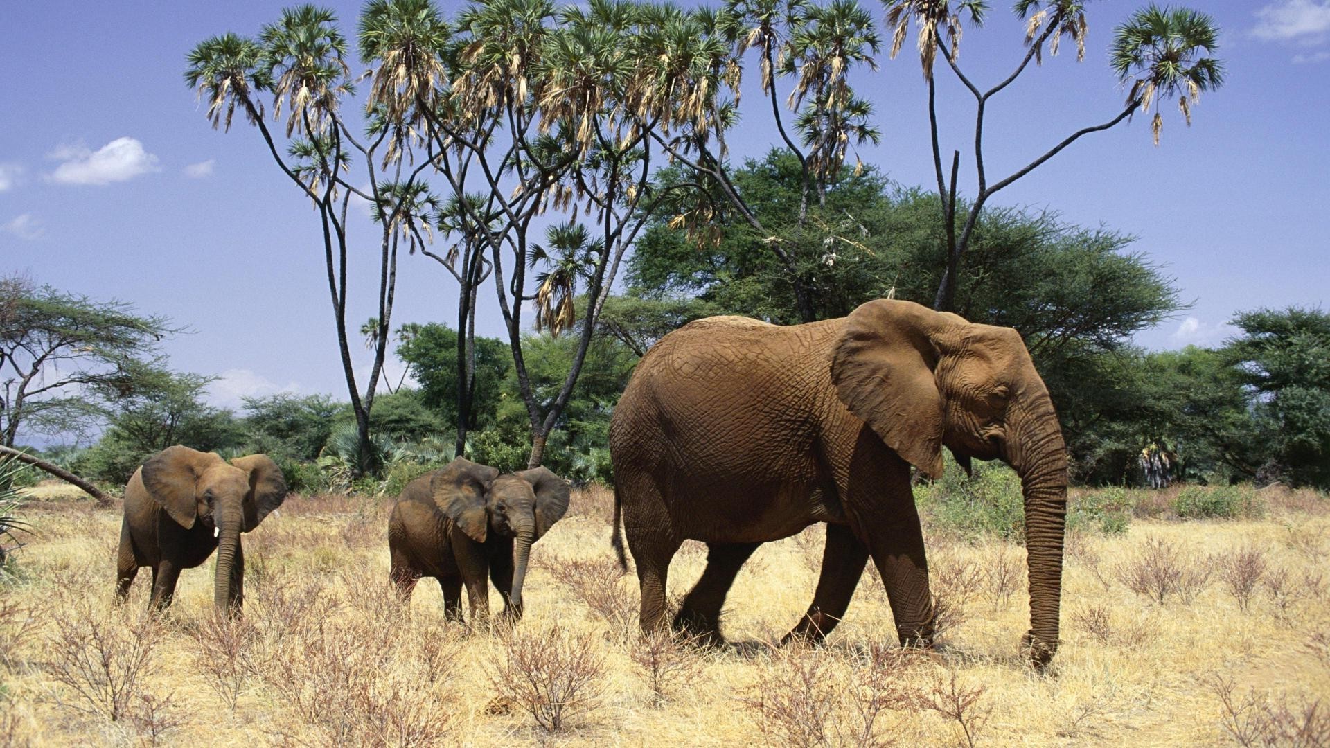 Gli Elefanti eseguono il passaggio attraverso la savana