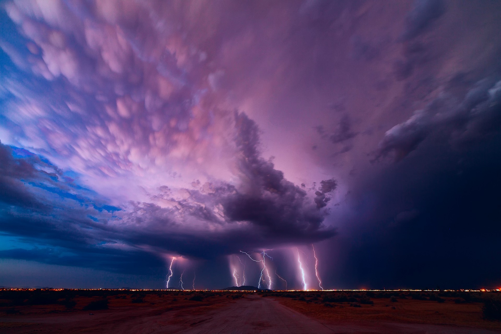 L'alba e il fulmine sono un incantevole paesaggio vicino all'acquaL'alba e il fulmine sono un incantevole paesaggio vicino all'acqua