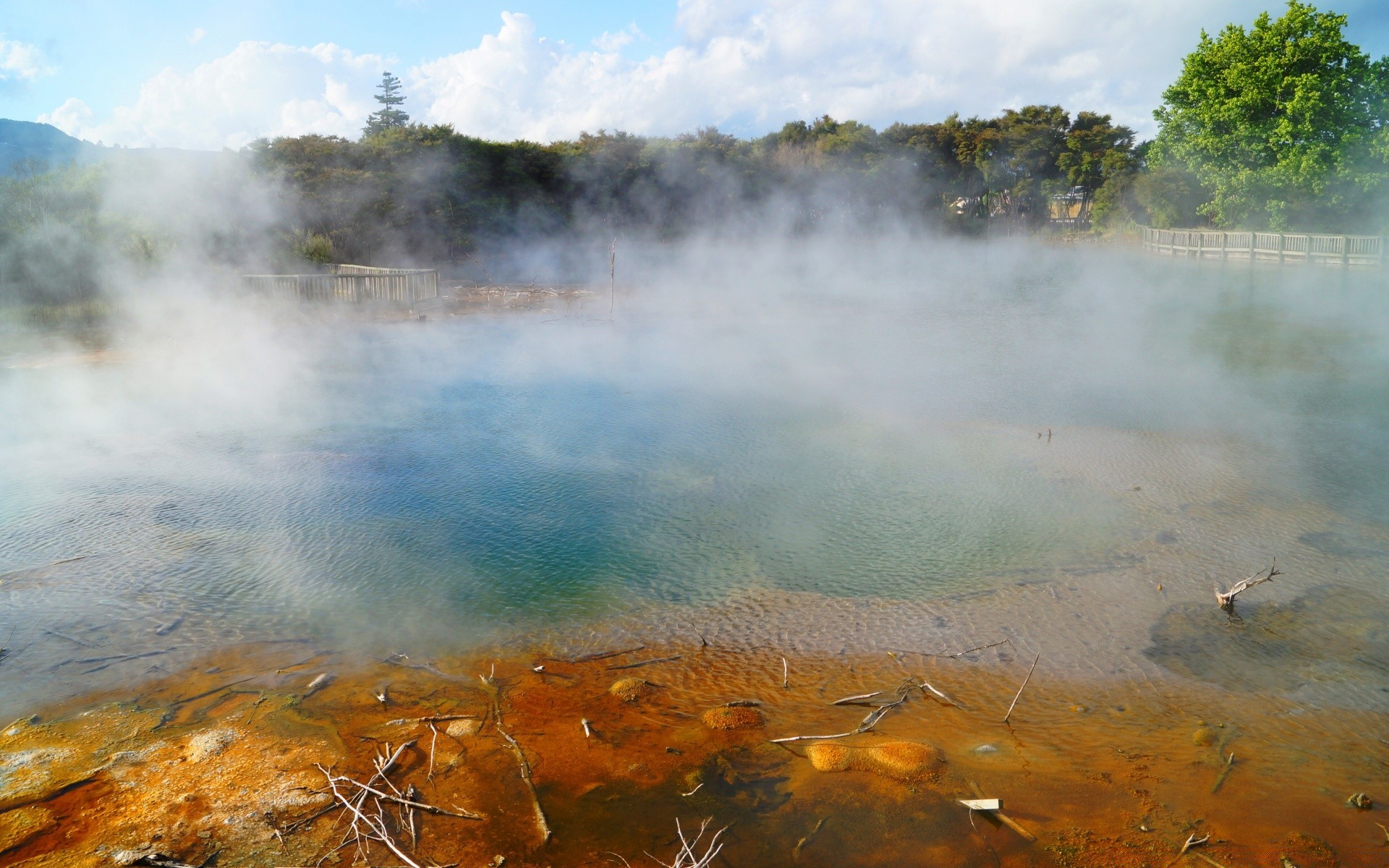 Lago caldo. vapore sul lago