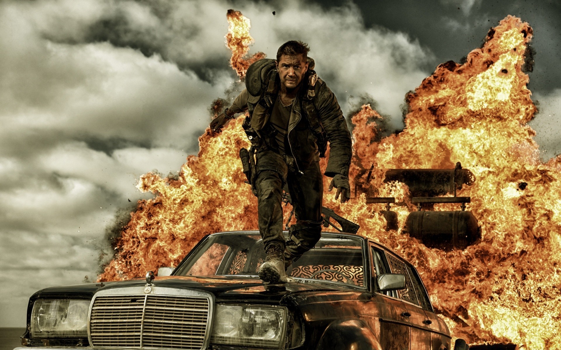 Uomo sullo sfondo di esplosione di fuoco