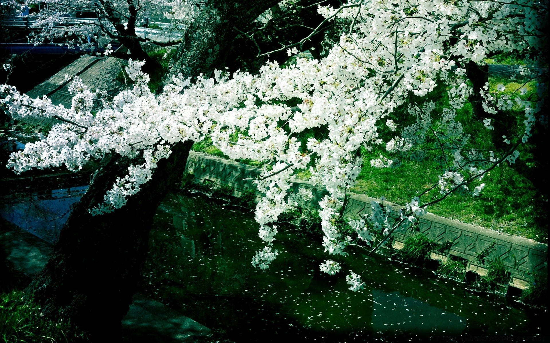 Alberi in fiore vicino all'acqua