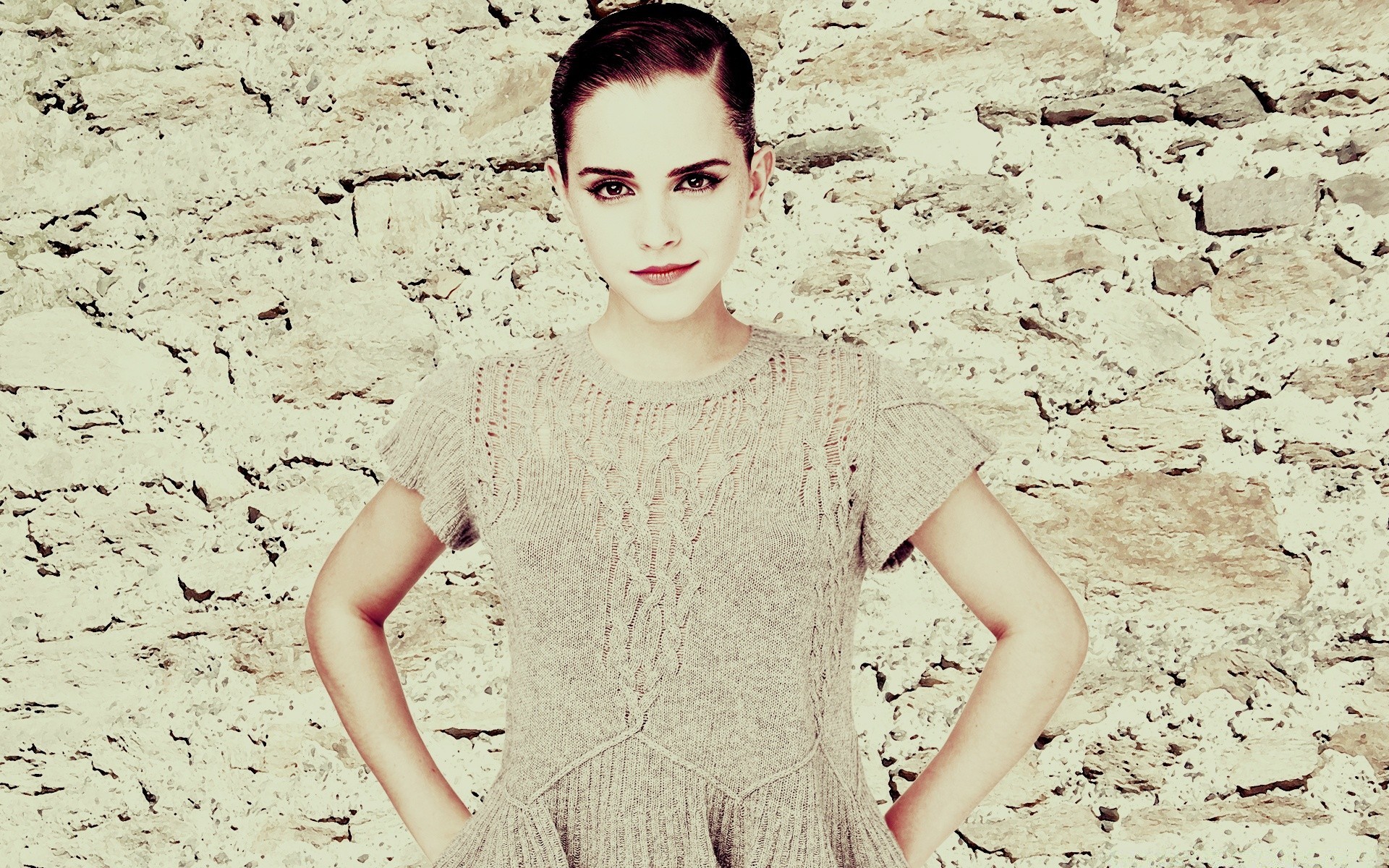 La modella mostra l'abito estivo sullo sfondo del muro