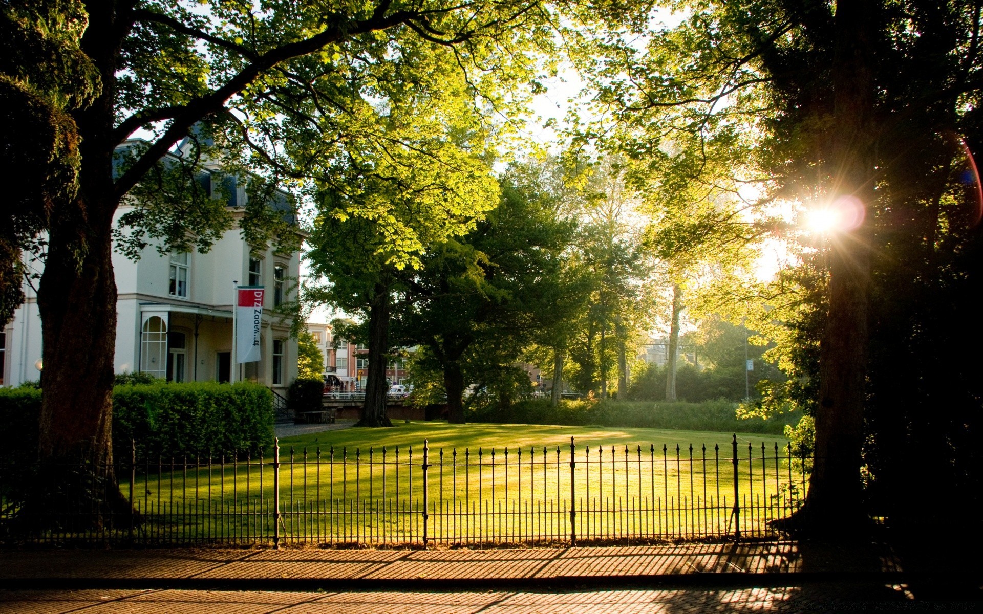Parco europeo con alberi e strada
