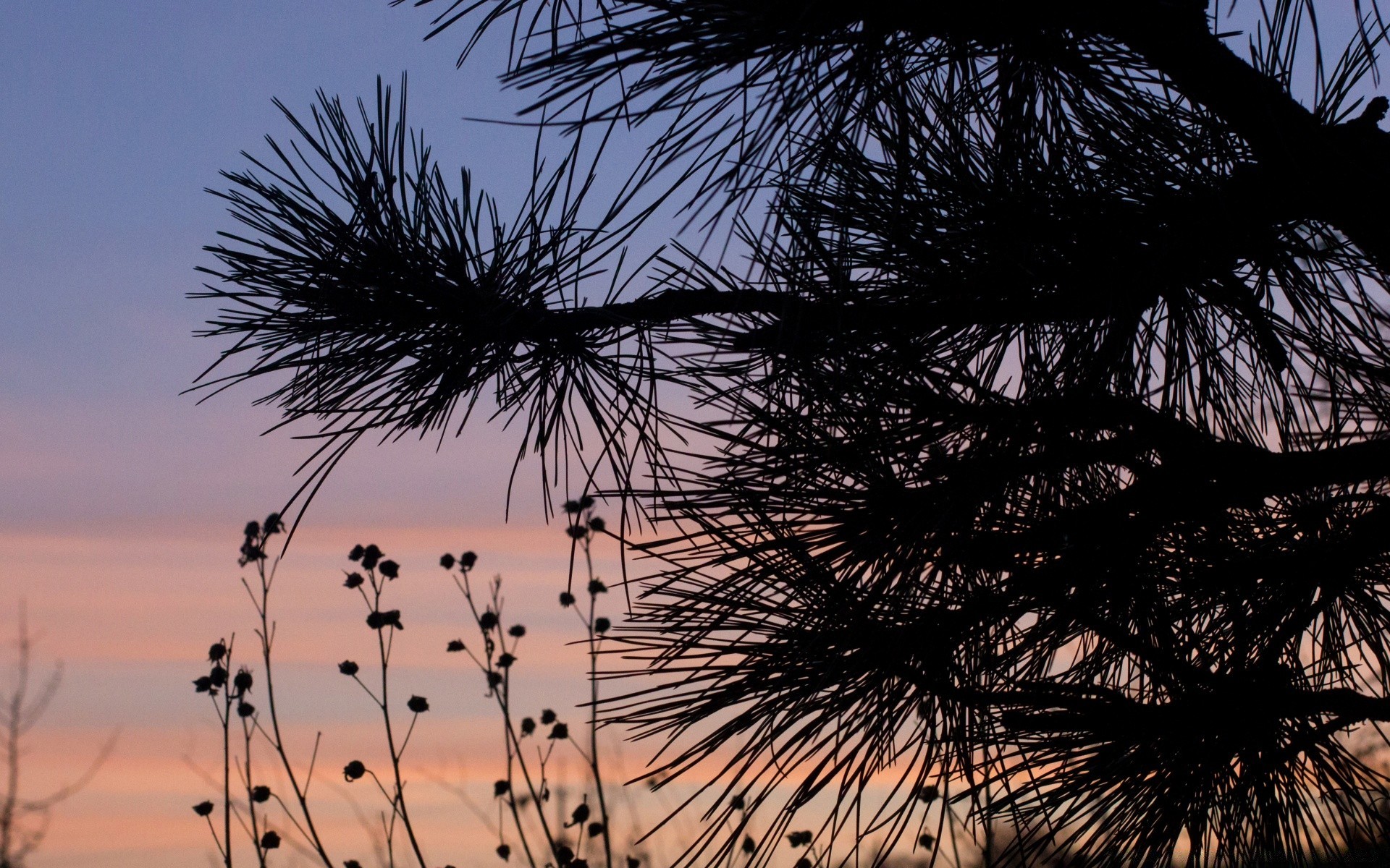 Zampe di conifere sullo sfondo di una giornata impalliditaZampe di conifere sullo sfondo di una giornata impallidita