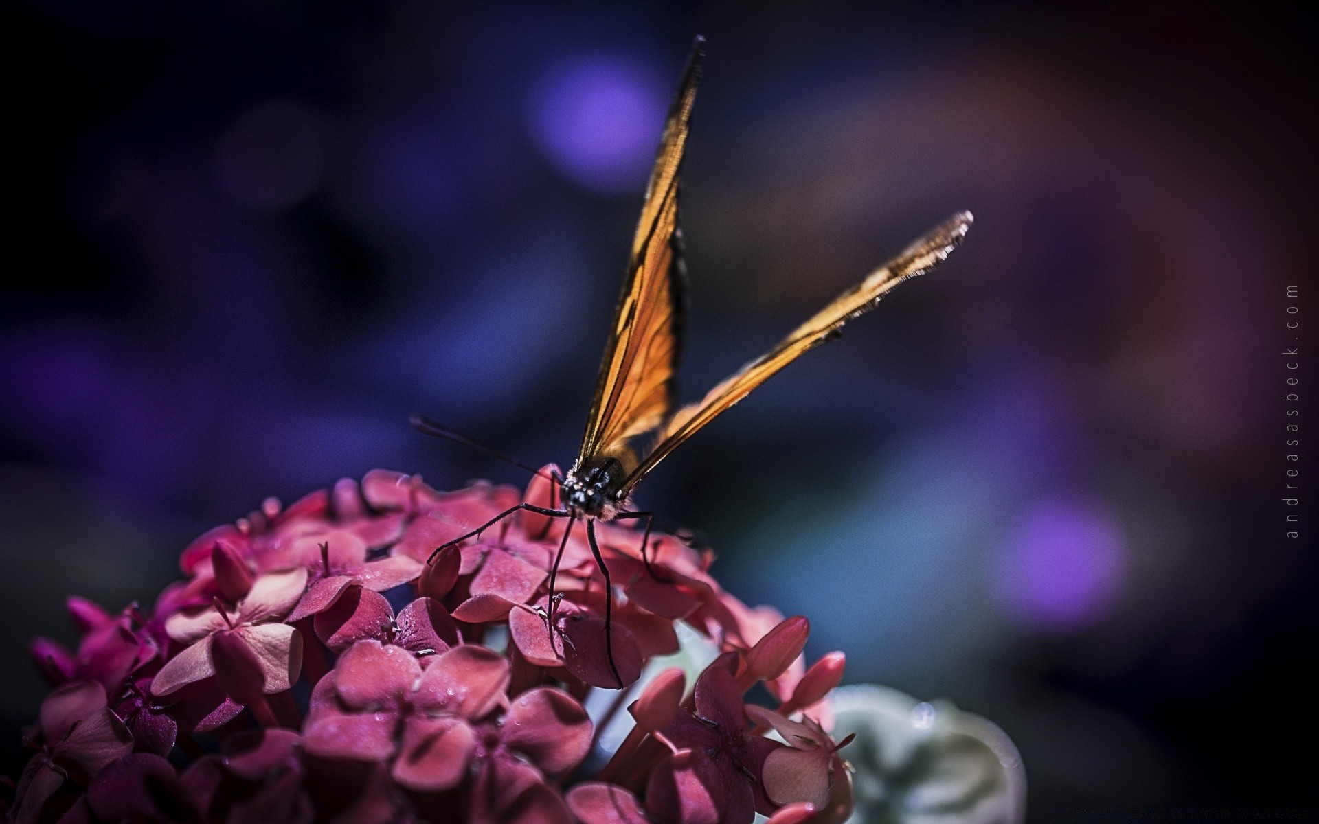 Farfalla accovacciata all'aperto su un fiore grigio; l'insetto è lei