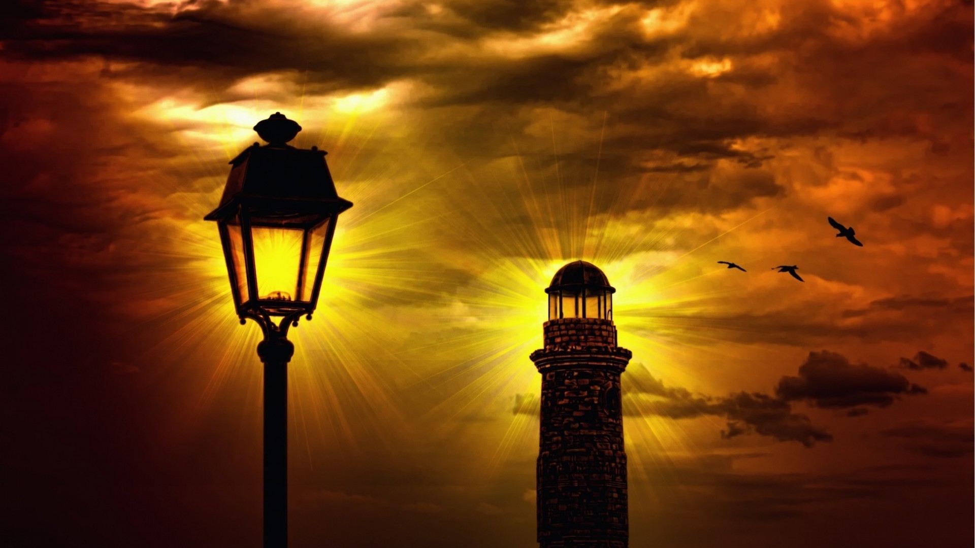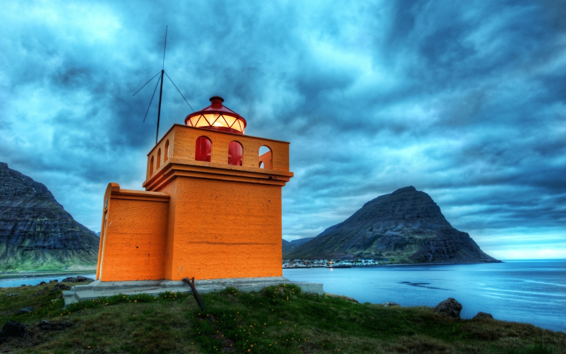 Faro solitario sullo sfondo dell'oceano e del cielo