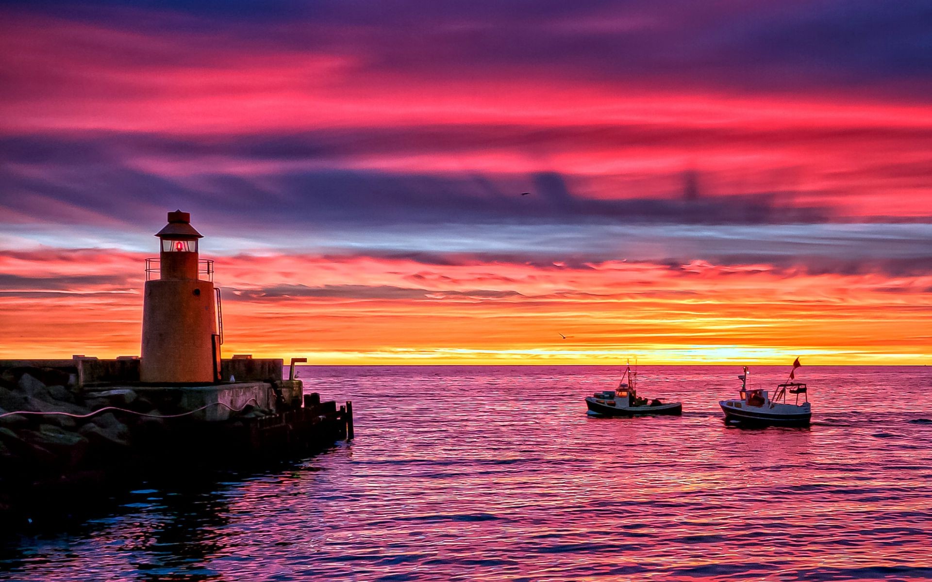 Faro in mare su un piedistallo di cemento ricoperto di pietre