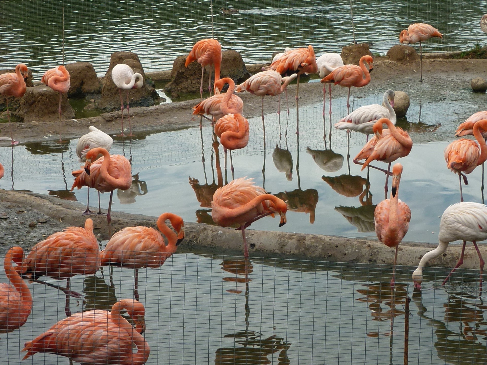 Un sacco di fenicotteri rosa stanno in acqua