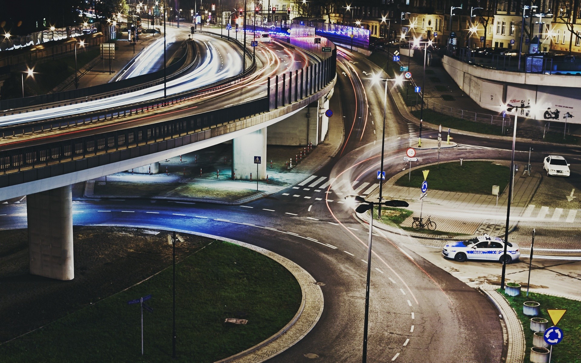 La luce del ponte nella notte e il suo bagliore nell'acqua