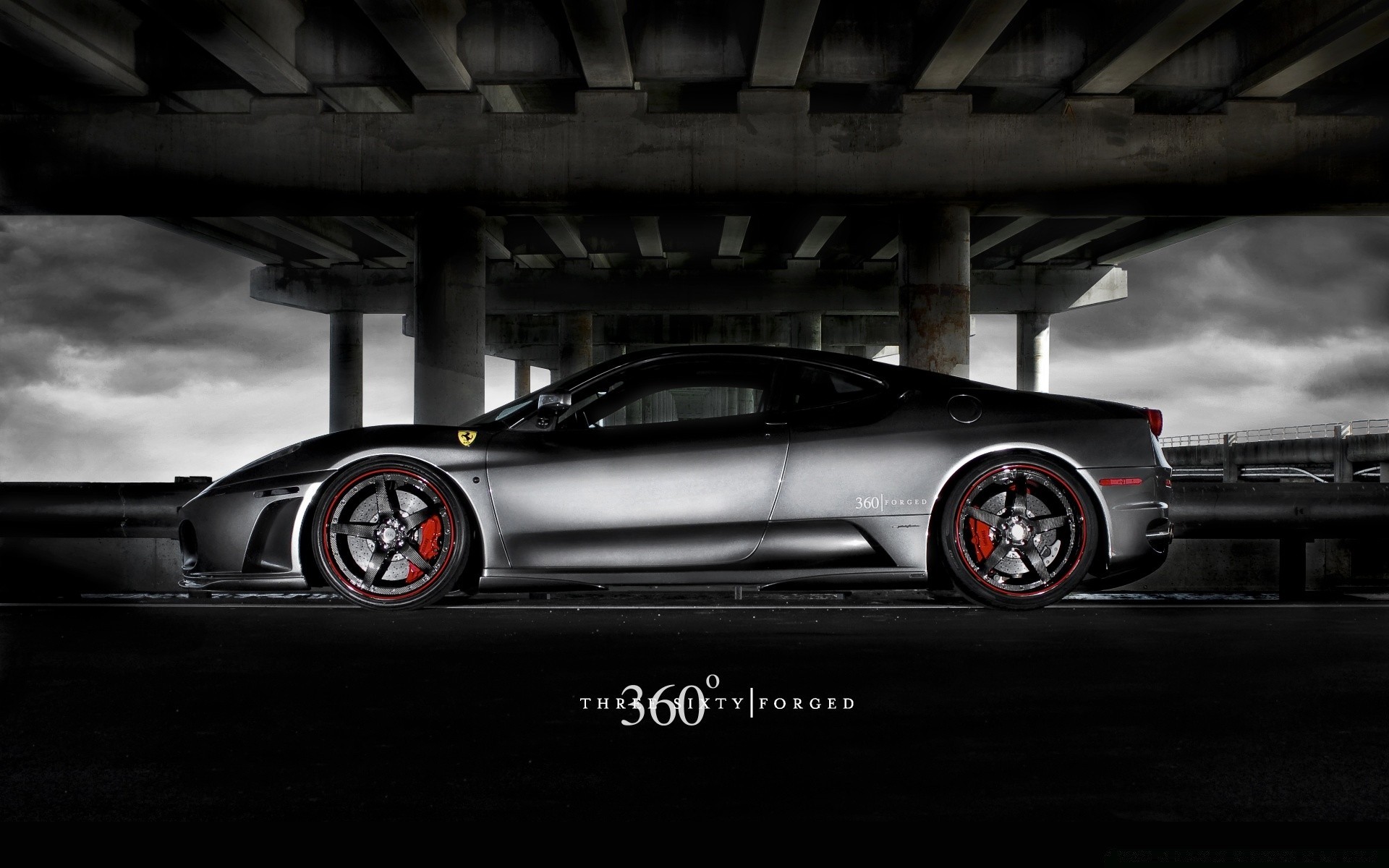 Auto sportiva Ferrari sotto il ponte