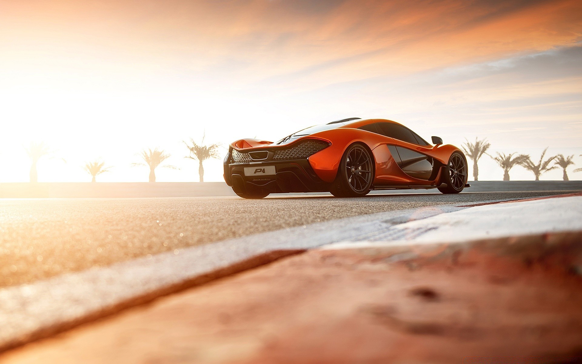 Auto rossa vicino al palazzo in città ai piedi della montagna