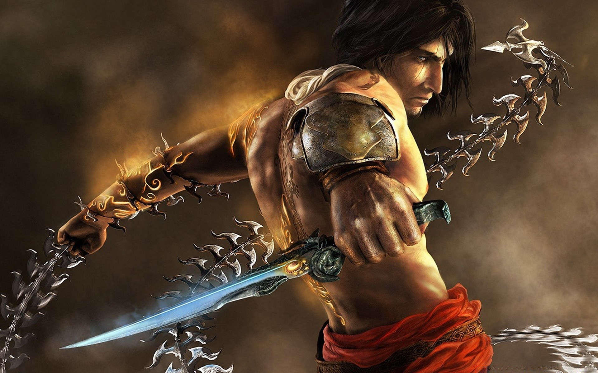 Principe di Persia con un pugnale su uno sfondo di fumo