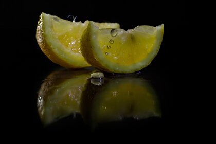 Fette di Limone sul tavolo con una spruzzata di succo