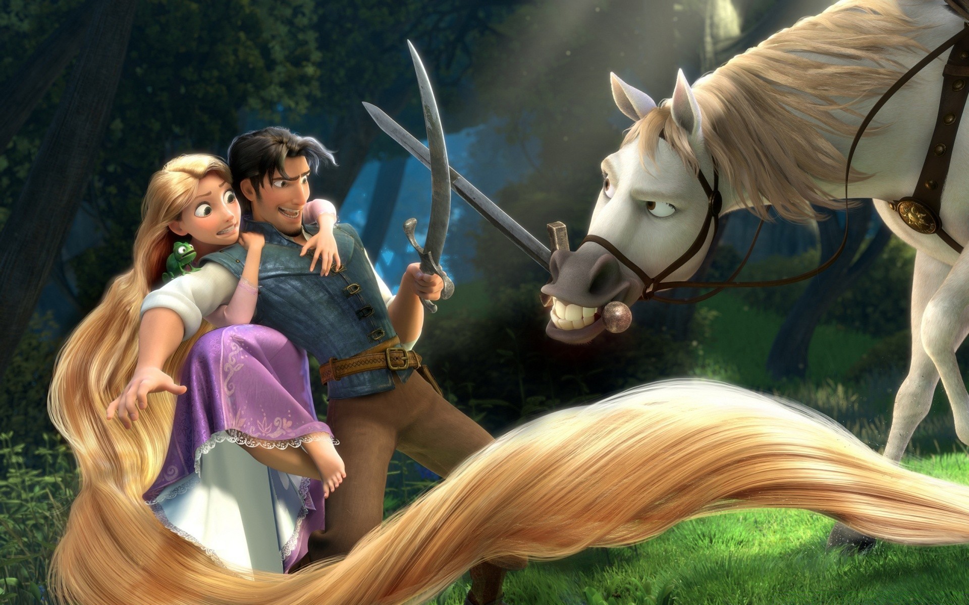 Rapunzel Dai Capelli Lunghi. Il ragazzo combatte il cavallo