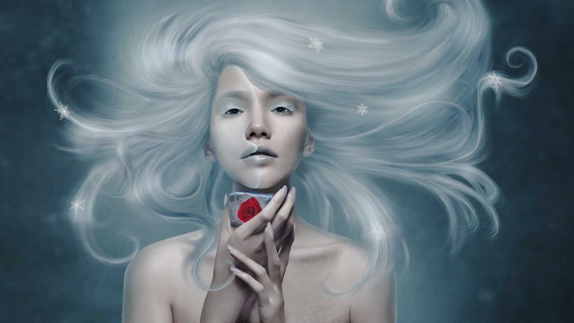 Fantasia. Castello sulla montagna. Cascata. C'è nebbia