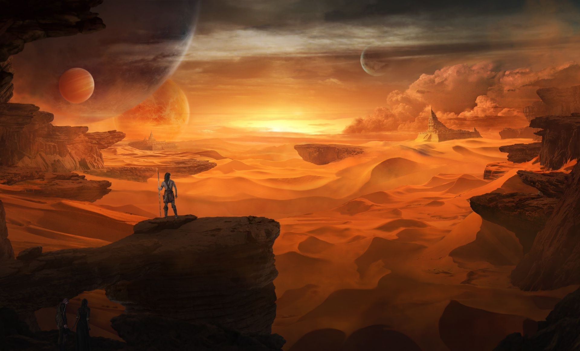 Eroi fantasy combattono con una lancia e un martello