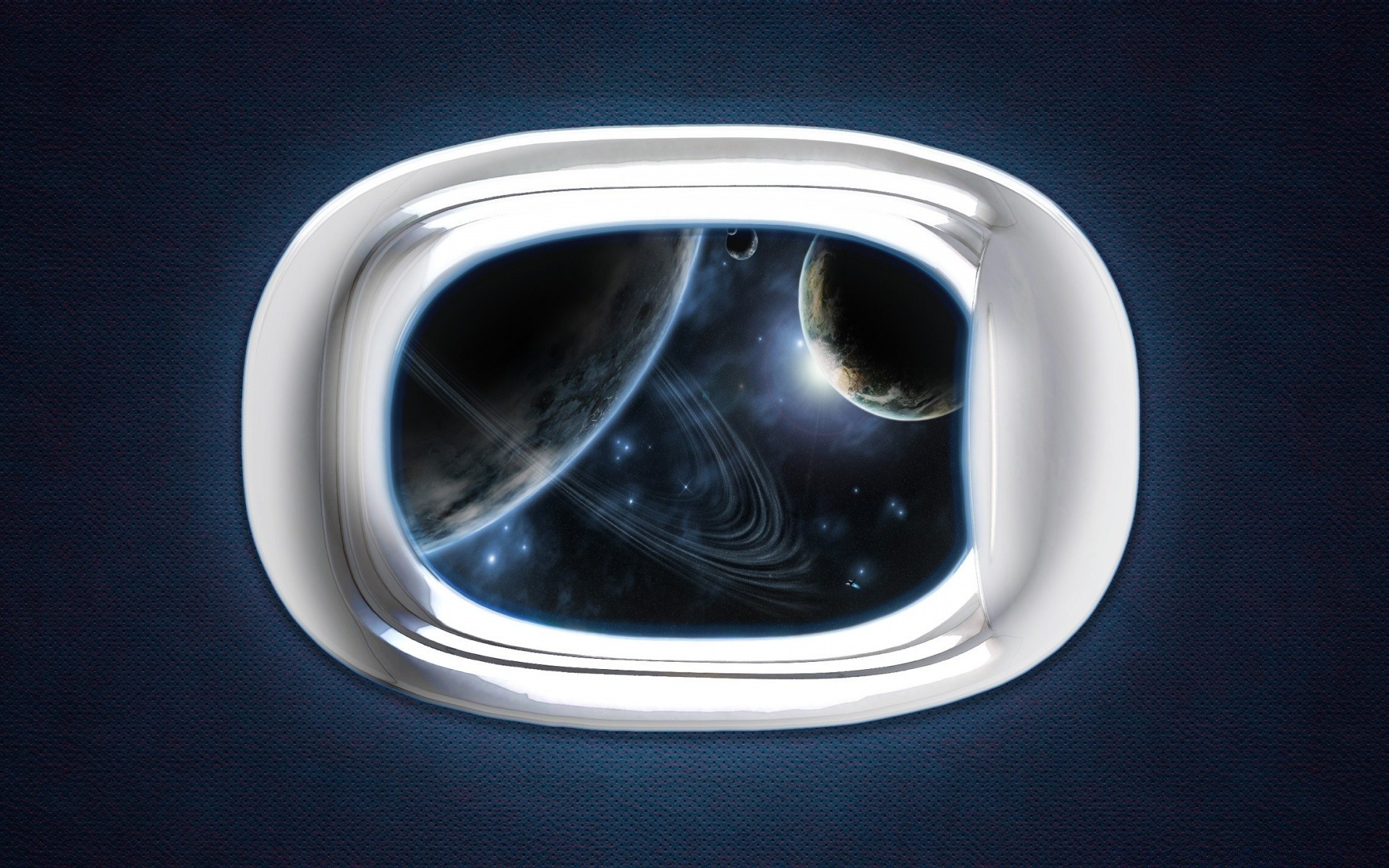Persone in piedi vicino alla finestra, dietro la quale si vede lo spazio