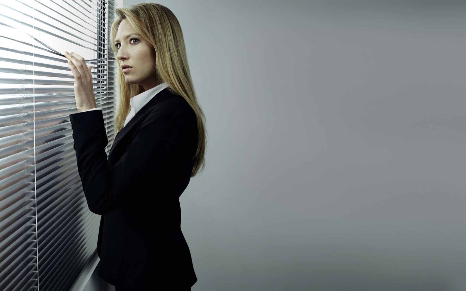 Ragazza sola davanti alla finestra con persiane