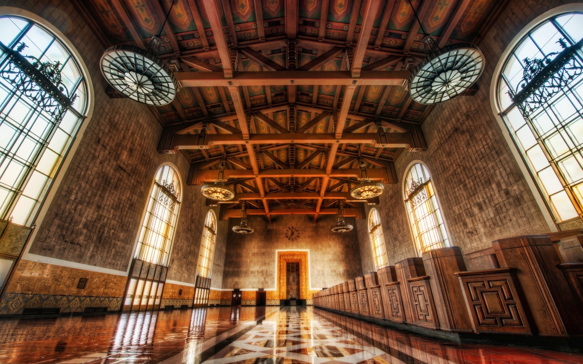 Ragazza nuota sott'acqua in una stanza con le finestre
