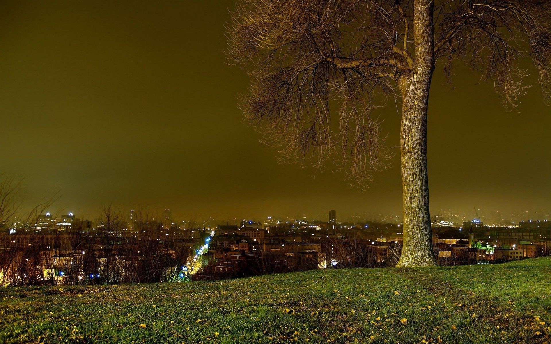 Ragazza-albero sul pendio sullo sfondo del cielo