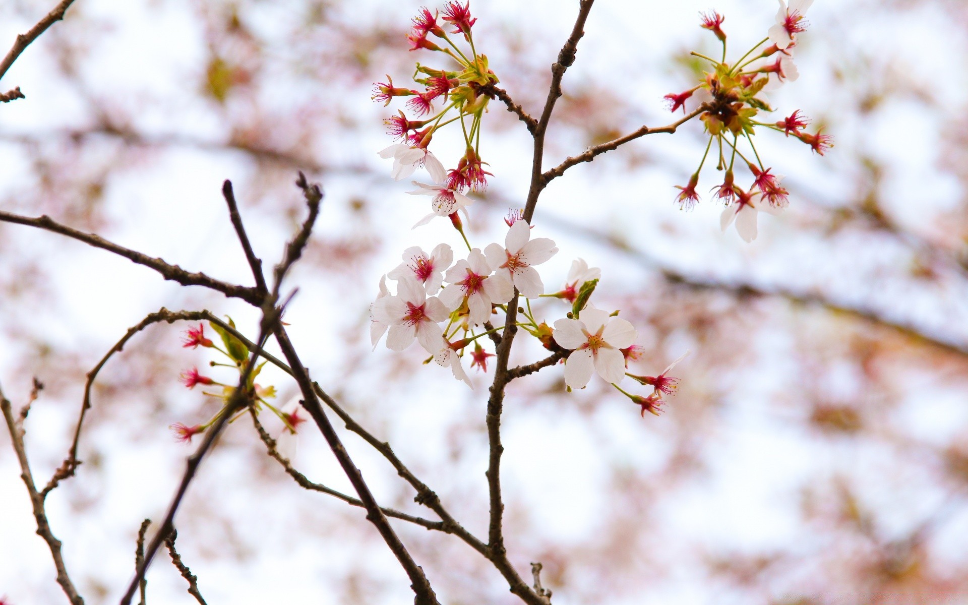 Fiori di ciliegio primaverili su uno sfondo di cielo blu
