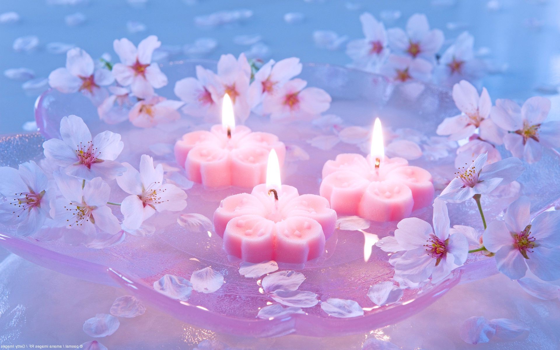 Candele a forma di petali in un vaso trasparente