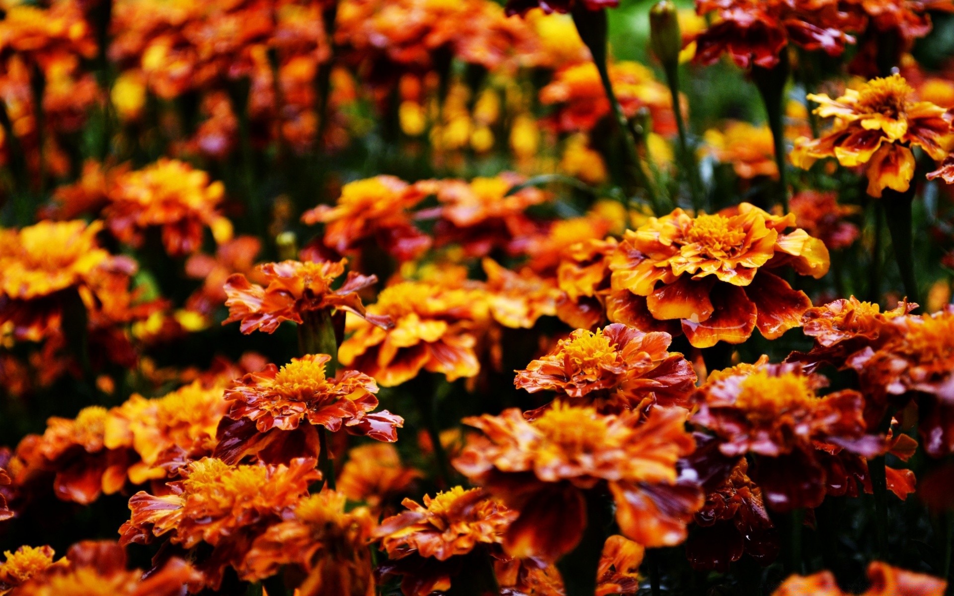 Piccolo pezzo di fiori sullo sfondo di un campo verde