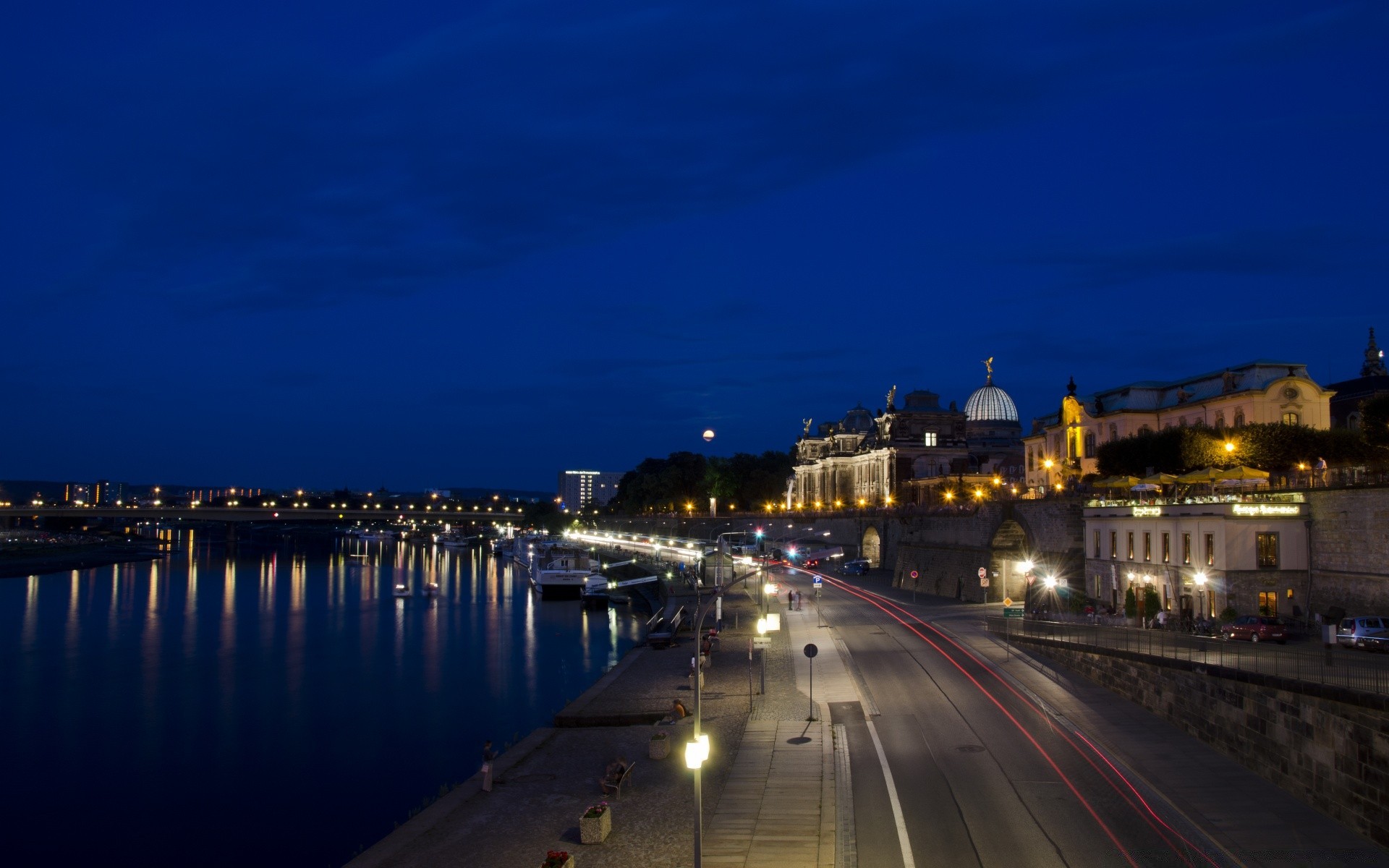 Luci della città notturna lungo il fiume