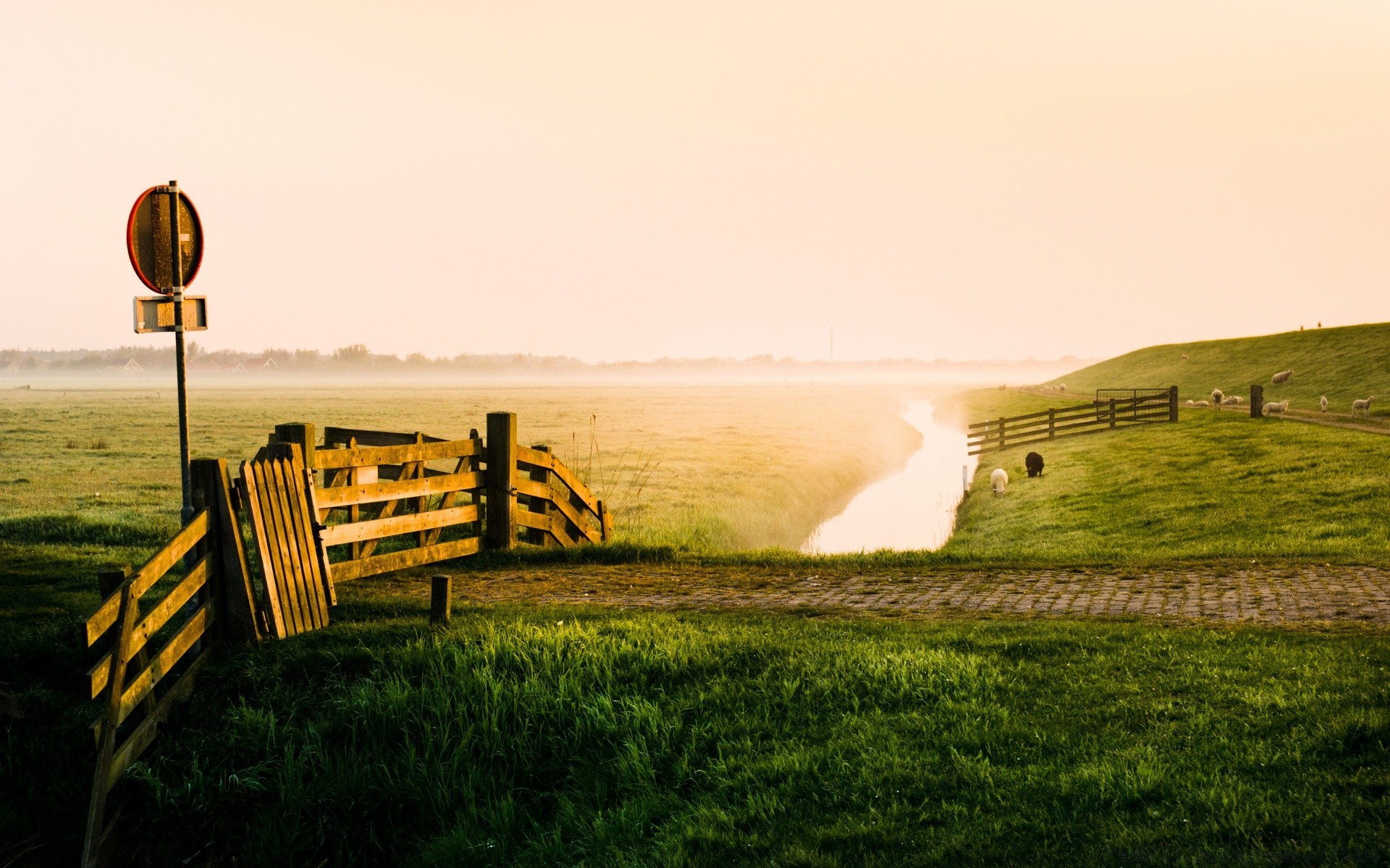 Alberi e persone sullo sfondo del tramonto vicino al fiume