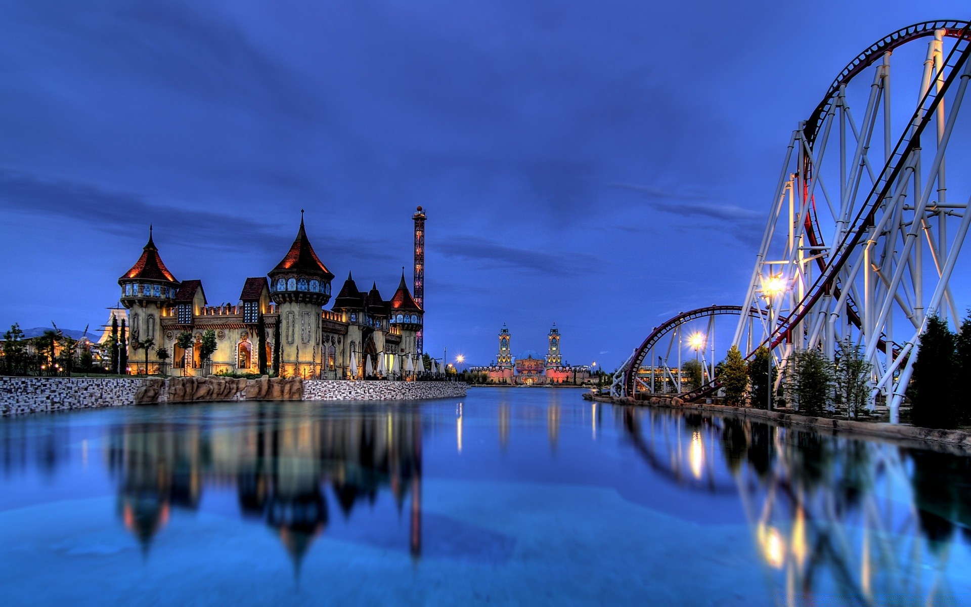 Vista serale del ponte illuminato sopra il fiume con nuvole nel cieloVista serale del ponte illuminato sopra il fiume con nuvole nel cielo