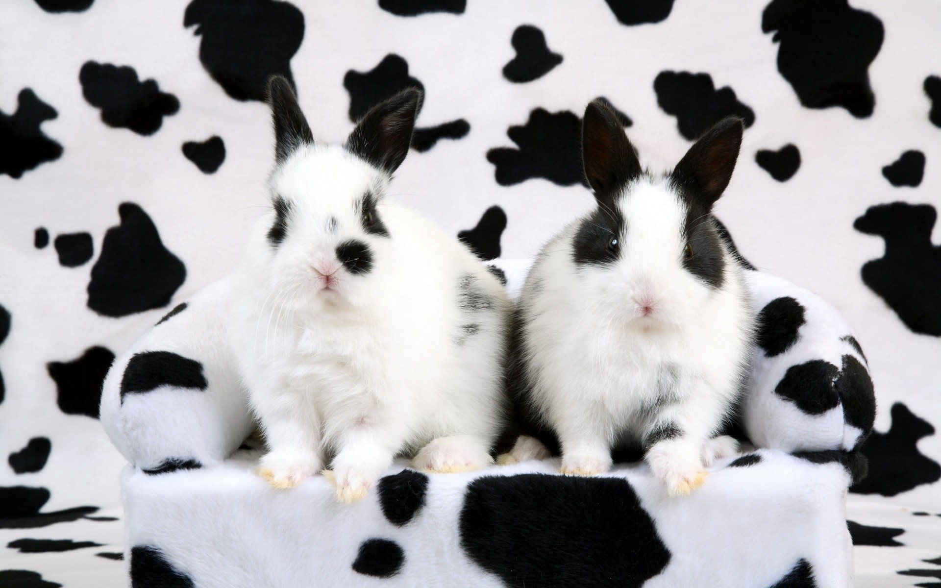Bianco e nero coniglietti sul divano