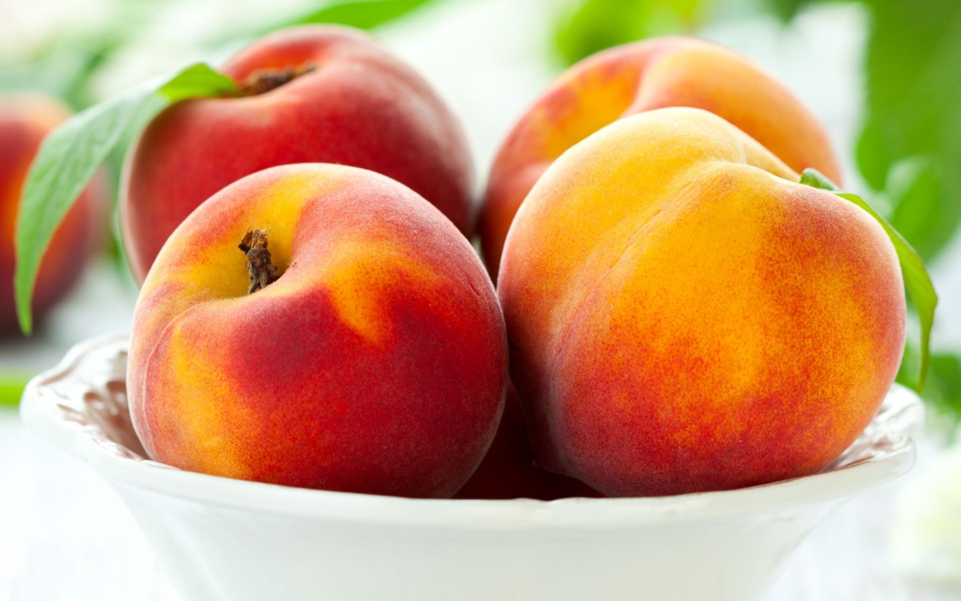 Pesche succose in una ciotola di frutta